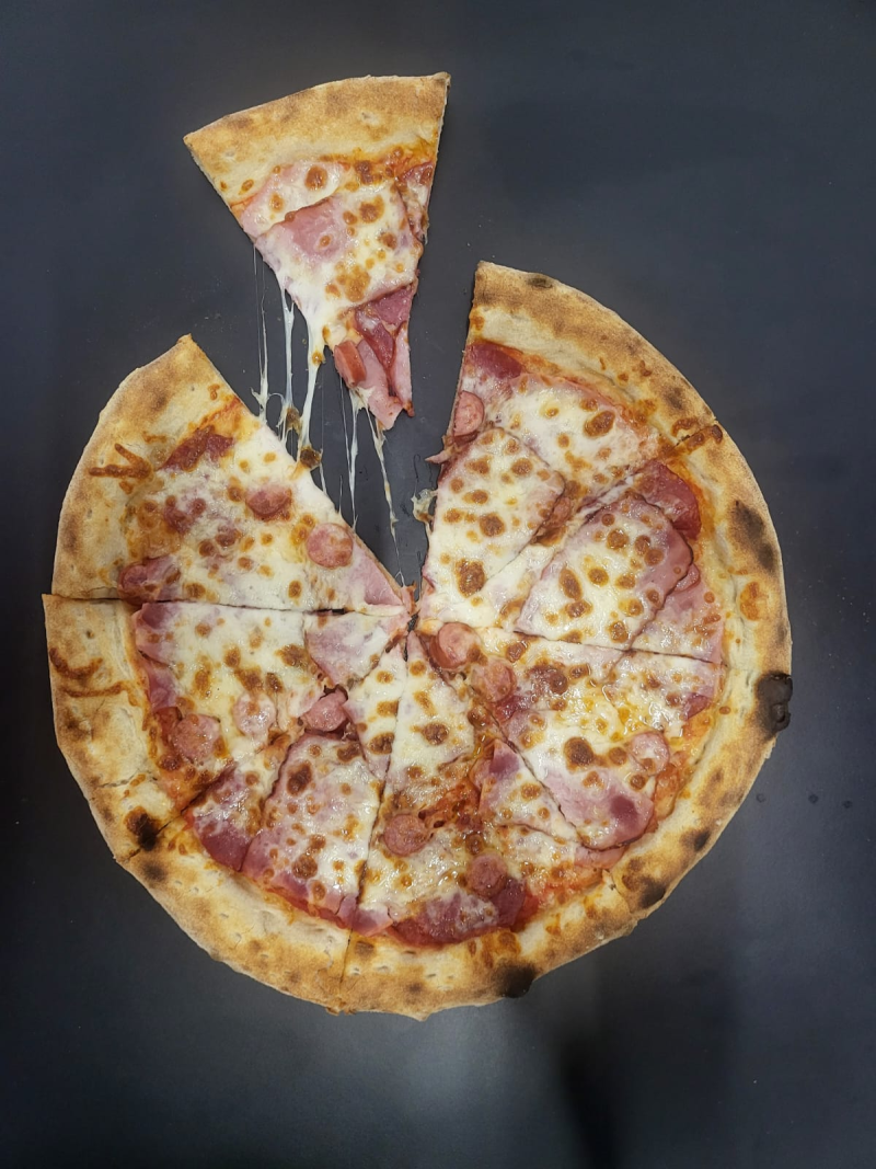 (Aluat, Sos pizza, Mozzarella, Carnaciori, Bacon, Sunca, Chorizo)