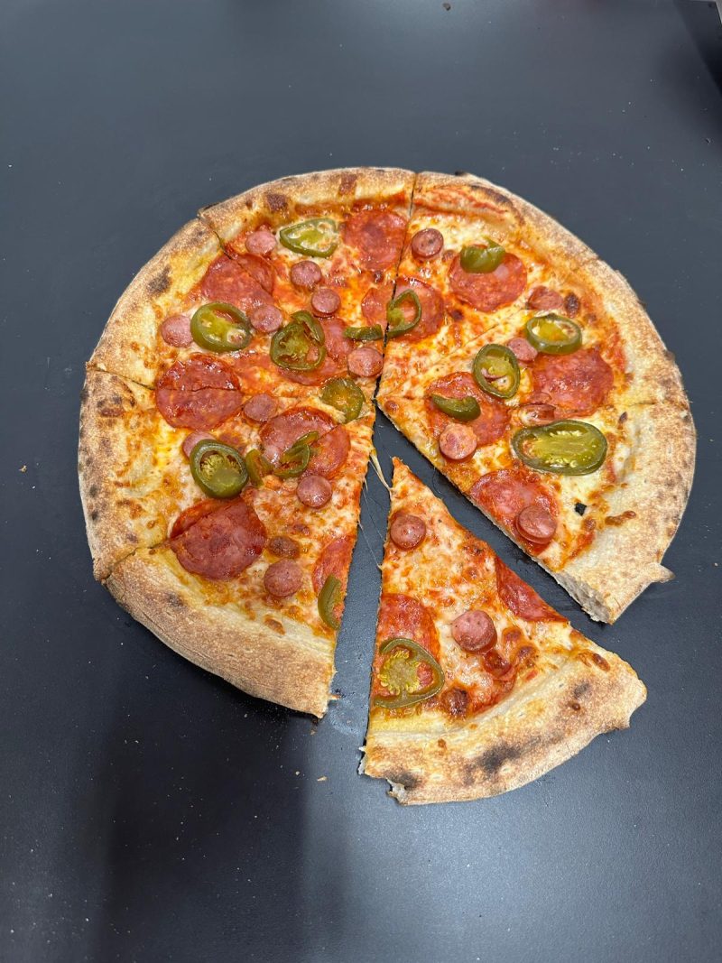 (Aluat, Sos pizza, Mozzarella, Chorizo, Ardei jalapeno)