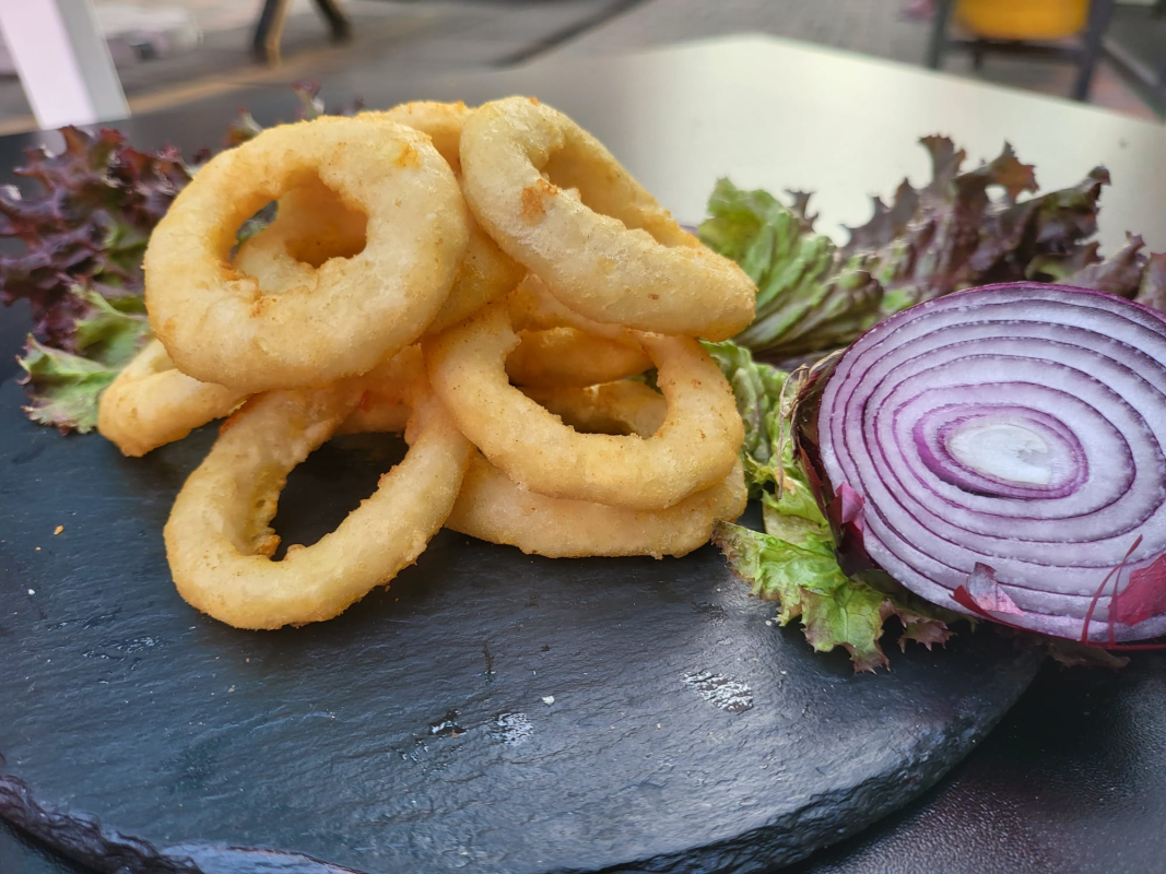 Inele de ceapa panetate si crocante, 10 buc/ portie 150g