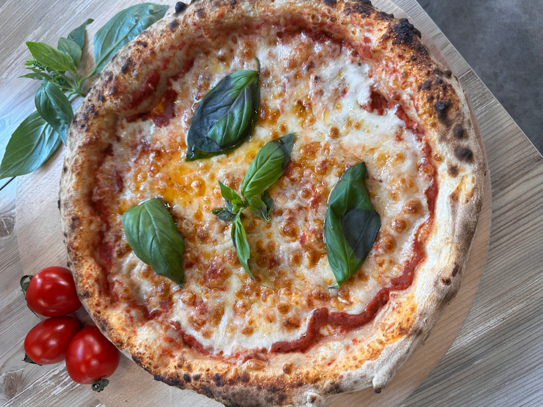 sos rosii aromatizat, mozzarella, ulei masline extravirgin, busuioc