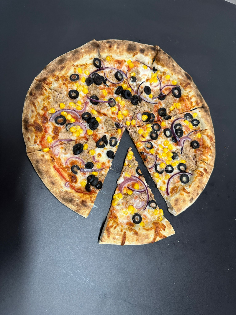 (Aluat, Sos pizza, Mozzarella, Ton, Masline, Ceapa, Porumb)